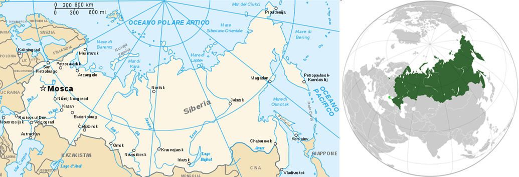 Fuso orario: + 3h quando in Italia è in vigore l’ora solare, +2 quando è in vigore ora legale (fuso di Mosca). Nelle altre regioni si va da +1h a +9h.
